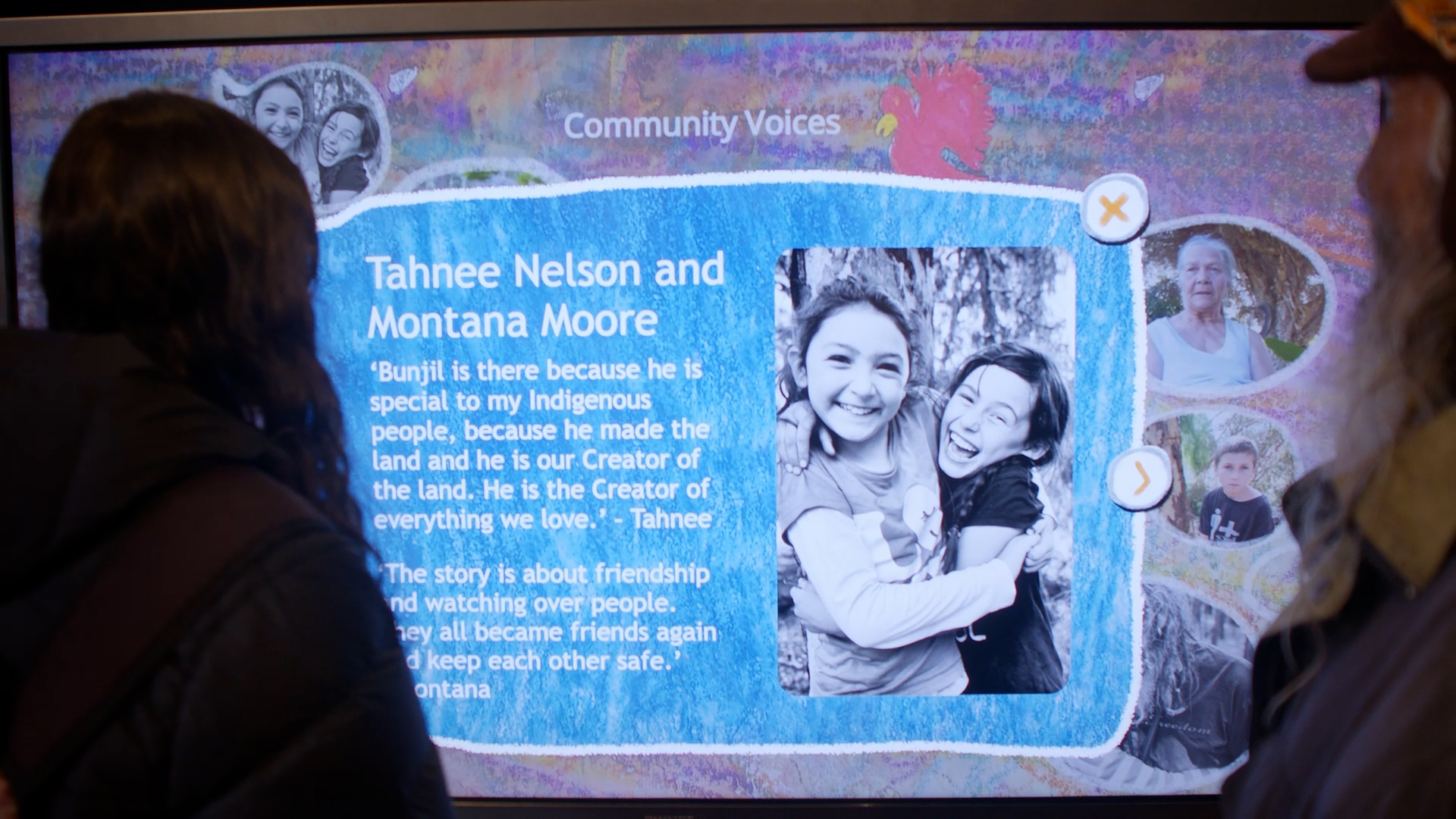 In 2015, Uncle Rick Nelson requested that we work with the community to translate this content into a permanent installation that could be housed in Castlemaine for ongoing use by the community and providing a culturally rich reference point for visitors and tourists. We are now partnering with the Jaara Community and Alexander Shire Council on a major permanent installation initiative due to open in 2021. The installation will house a large-scale interactive panel, a 360 degree immersive Welcome to Country experience and a wide range of content relating to traditional food, the seasons and traditional land management. The new permanent installation will be opened in Uncle Brien’s memory, following his passing in 2019.