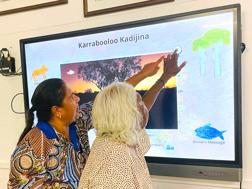 The lead on the project, Nyikina Elder Annie Nayina Milgin, spoke about the importance of sharing knowledge with young people using new technologies. “We grew up with what old people gave us, passing on knowledge, but our old people didn’t know how to read and write. They usually used a message stick. That’s how we learnt. But now everything has changed, and it’s a modern way, and the old people are happy, happy about the way our kids are using technology and the way they are learning languages and stories so we can keep practising our culture.”
